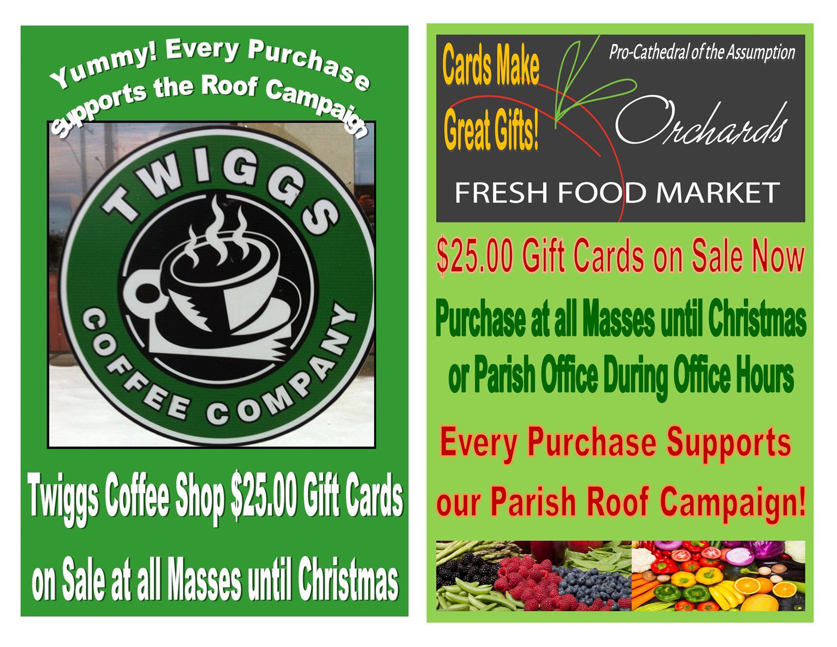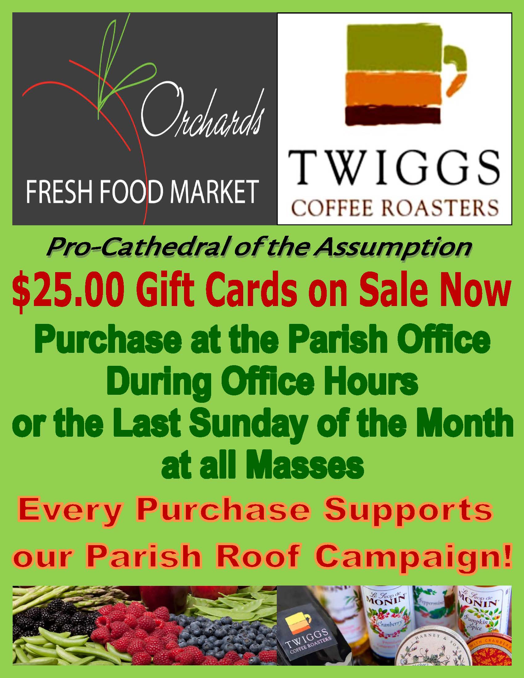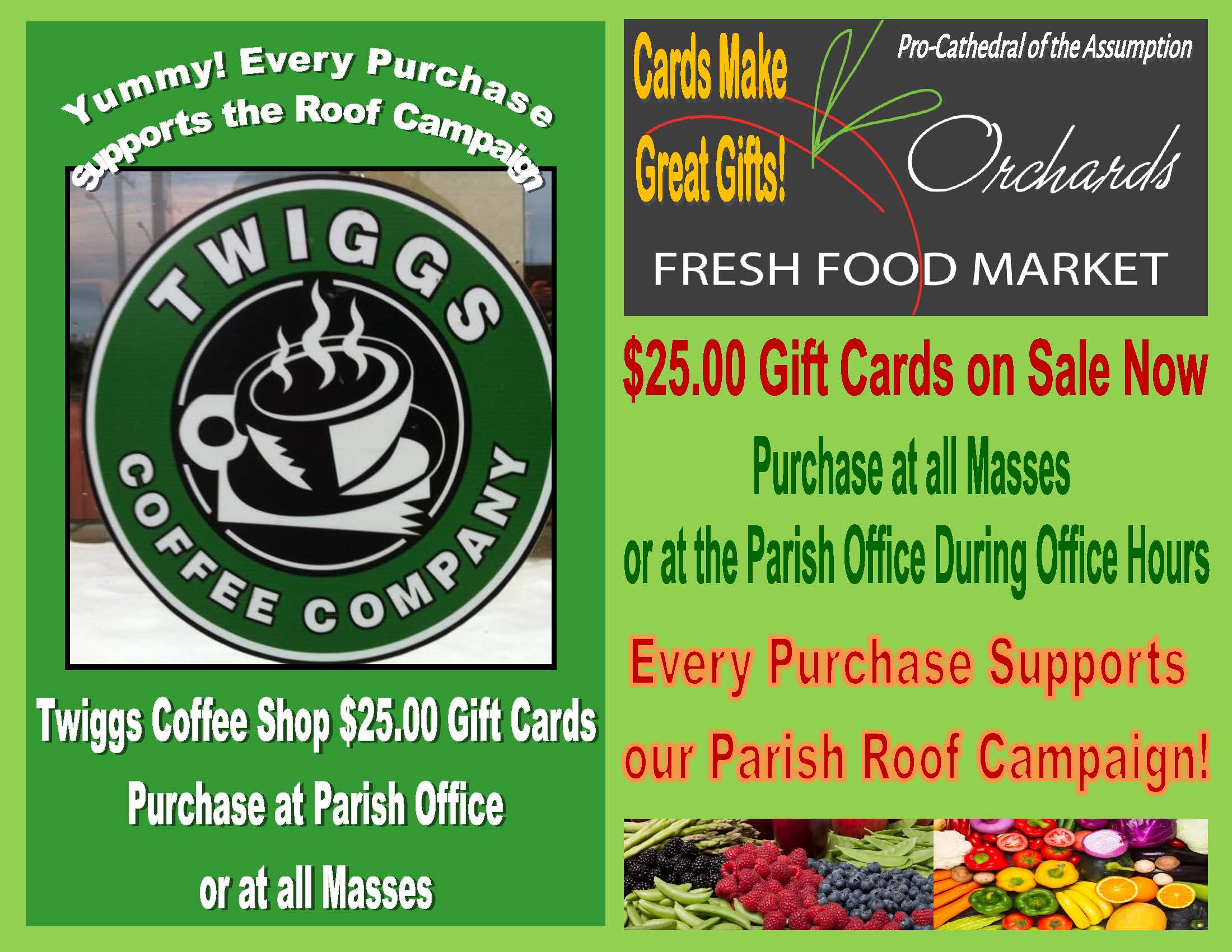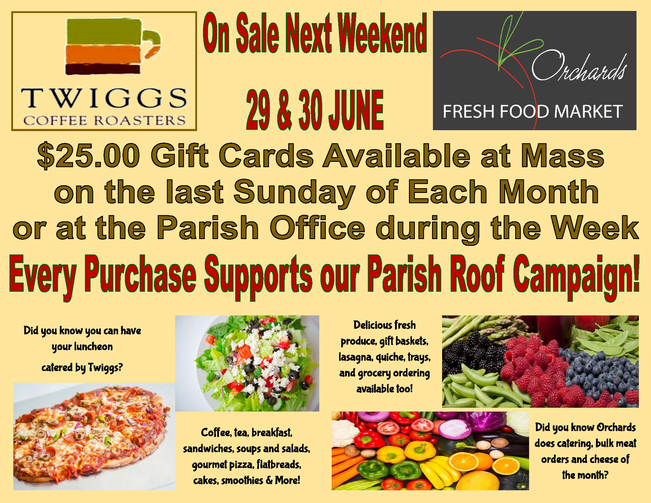 This Weekend – Orchards Cards on Sale at all Masses