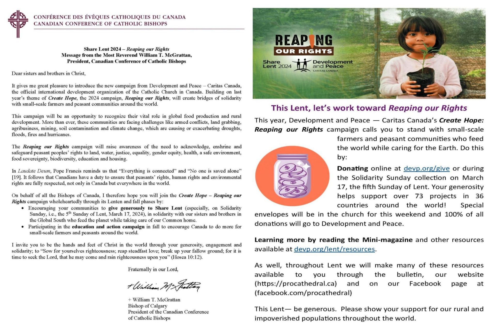 Development & Peace Solidarity Calendar for Lent