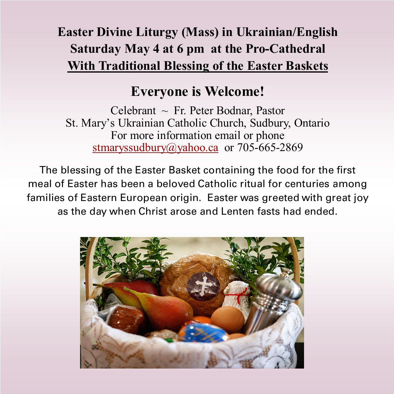 Listen to Bishop Damphousse’s Easter Message by cutting and pasting this link into your web browser: https://youtu.be/VIqTMHLy_mc