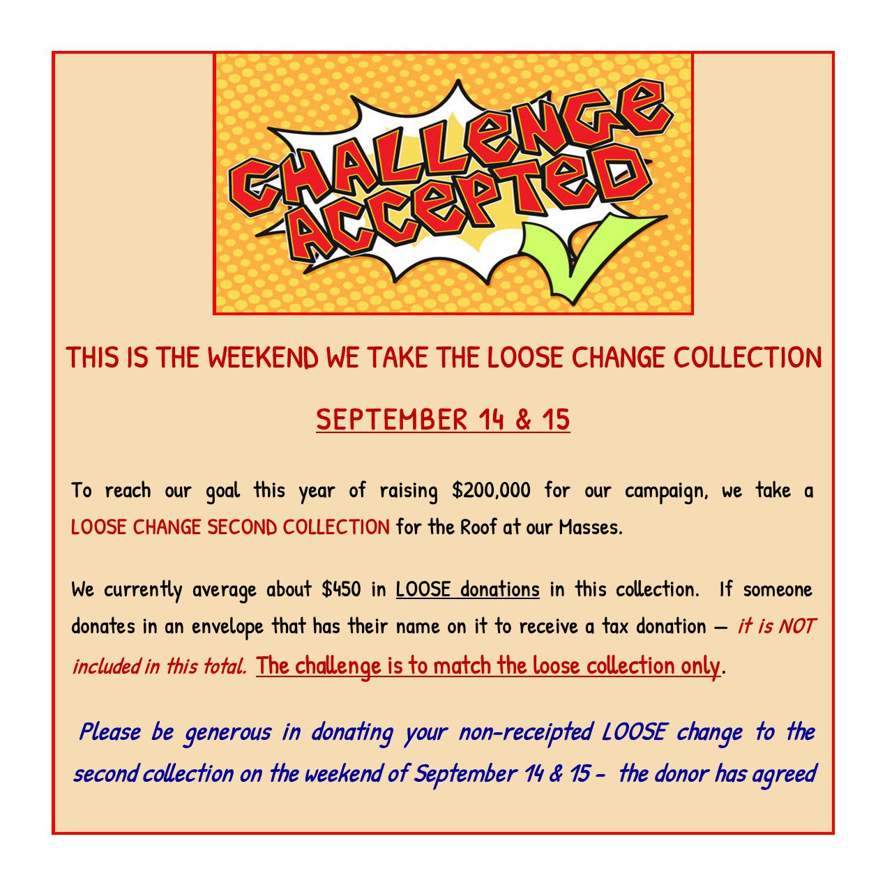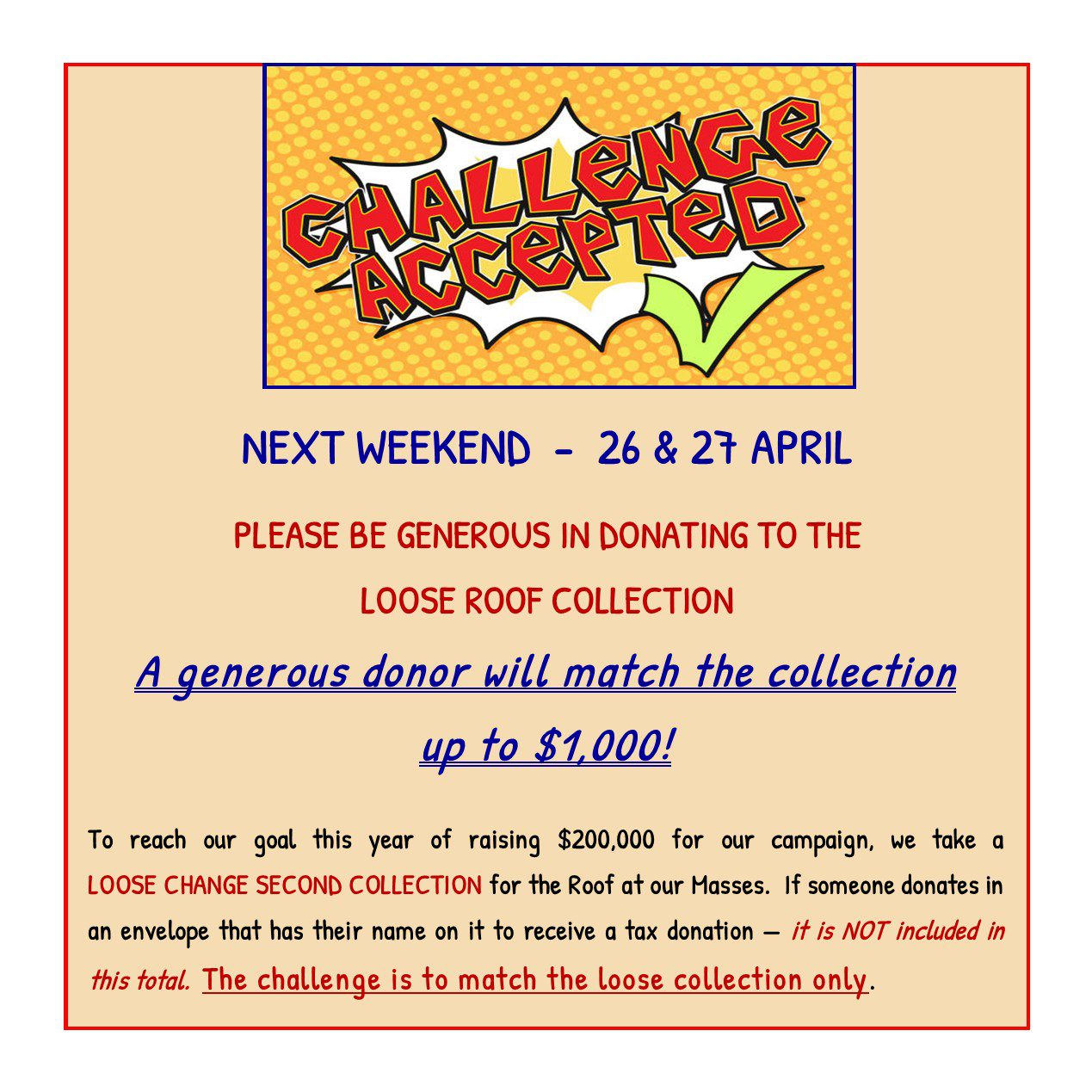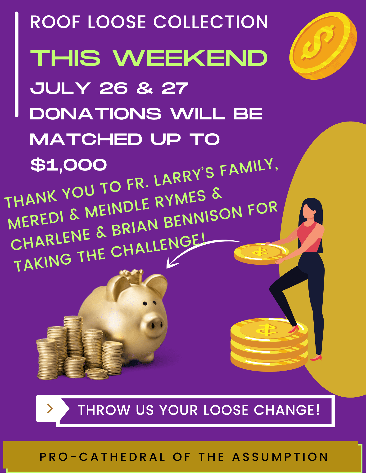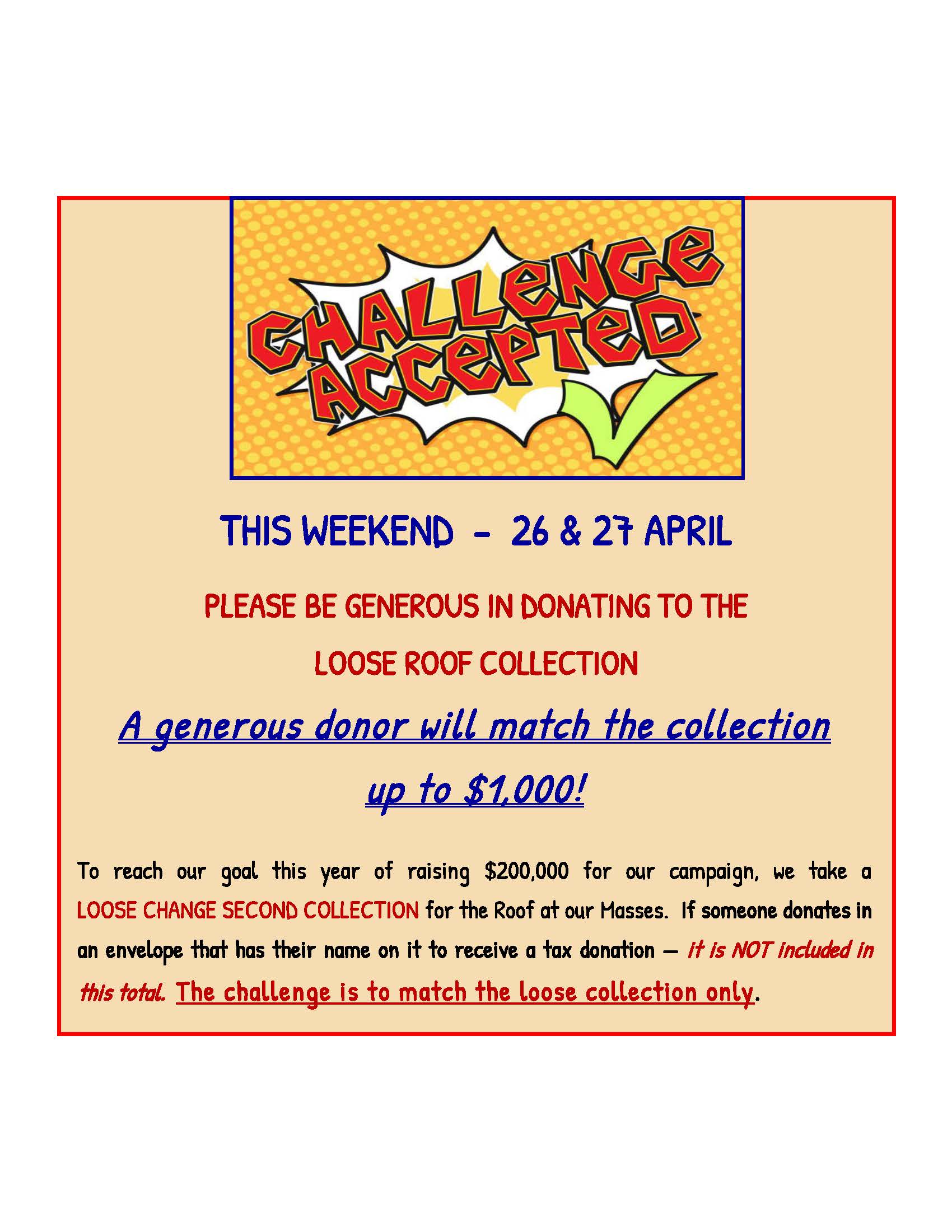 This is a Roof Loose Collection Weekend – your donations will be matched up to $1,000!