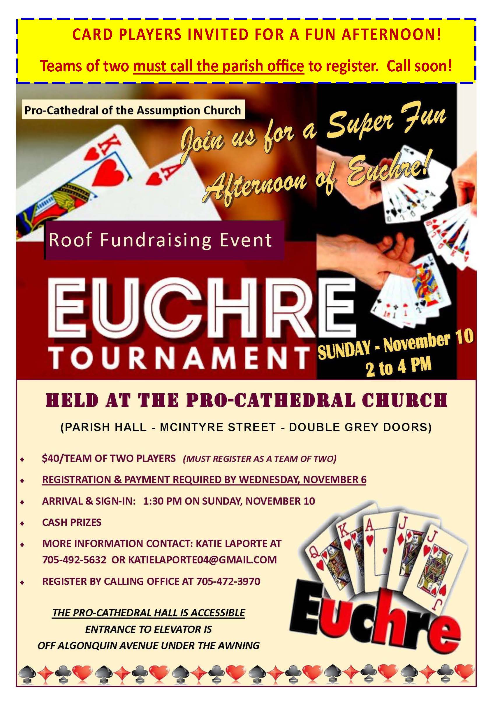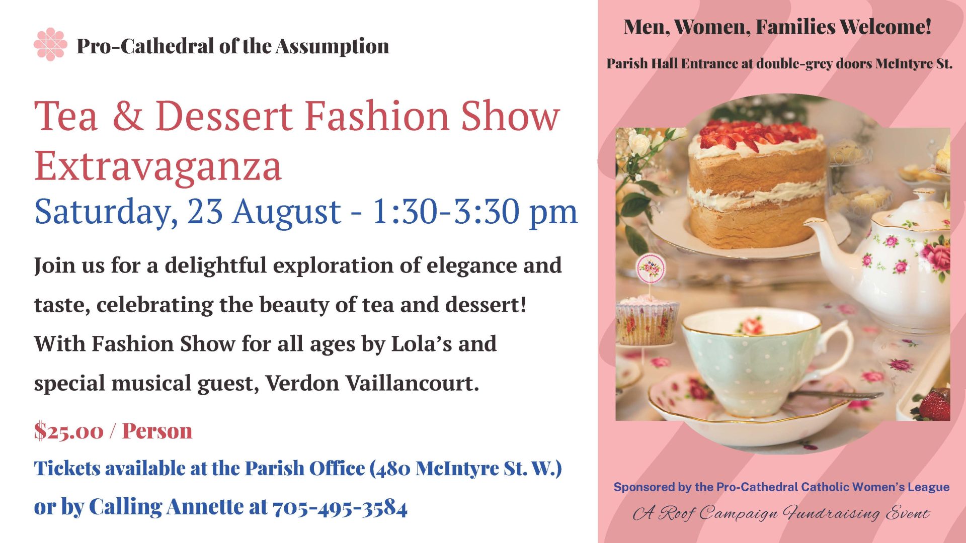 If arriving from the North, East or West, when you meet at the Hwy. 11/Algonquin Avenue lights, take Algonquin Avenue South and follow until you see the Pro-Cathedral on the right hand side. We look forward to your arrival.