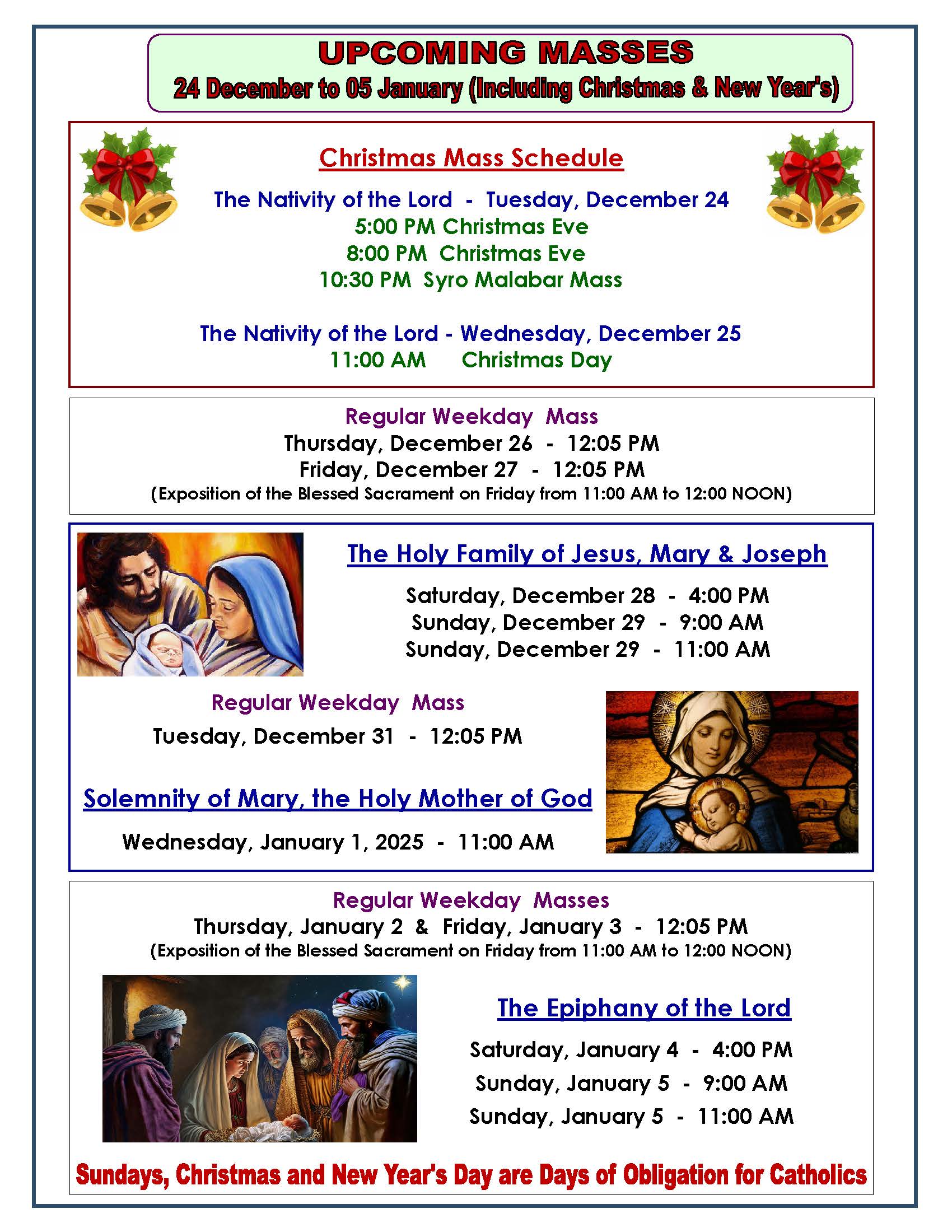 Regular Scheduled Mass Times