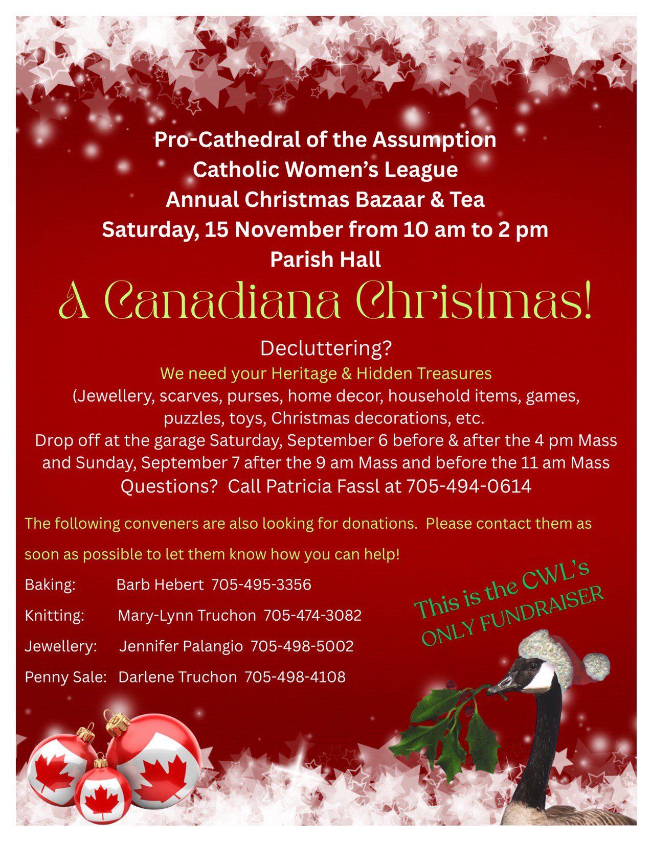CWL BAZAAR NEXT SATURDAY – NOVEMBER 15 from 10:00 AM to 2:00 PM