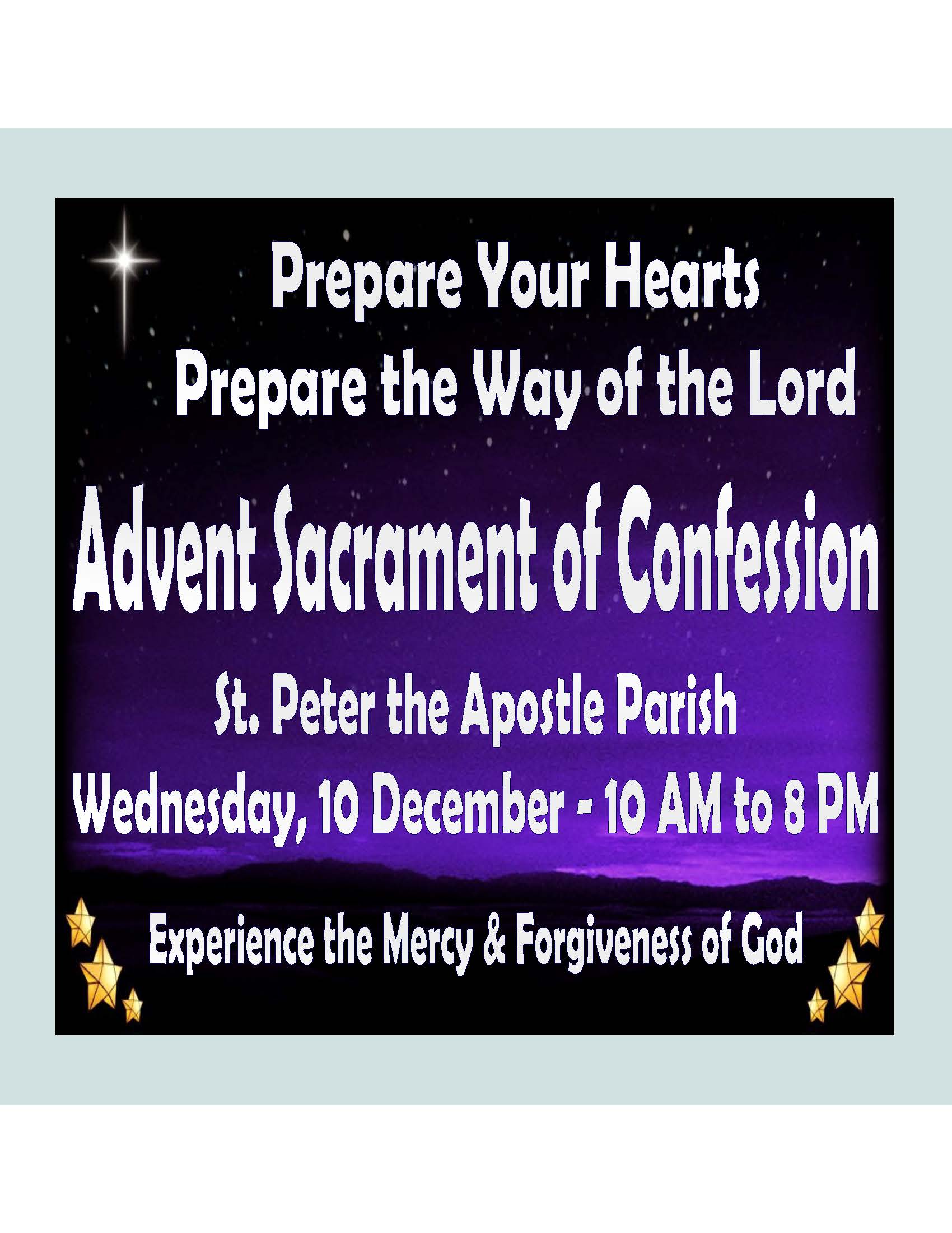 ADVENT DAY OF CONFESSION – Wednesday, December 10 at St. Peter the Apostle Church