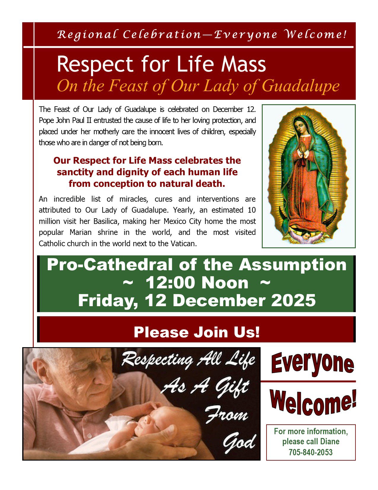 Respect for Life Mass this Friday, December 12 – Regional Celebration, All are Welcome!