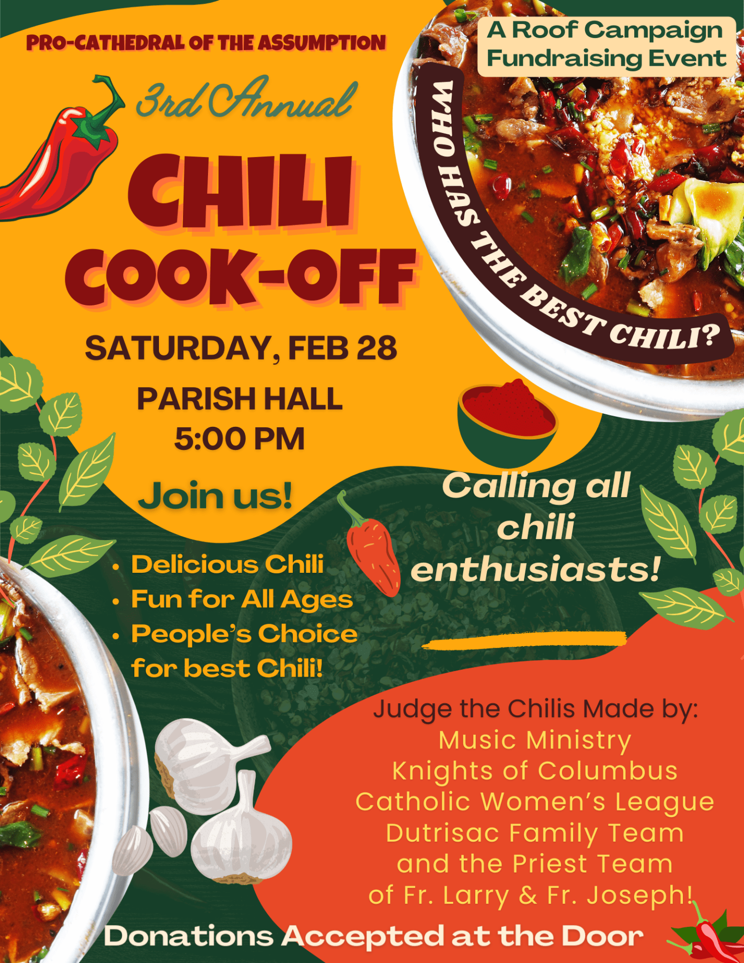 CHILI COOK-OFF THIS SATURDAY, FEB 28, 5 PM – ENTER BY DONATION AT DOOR
