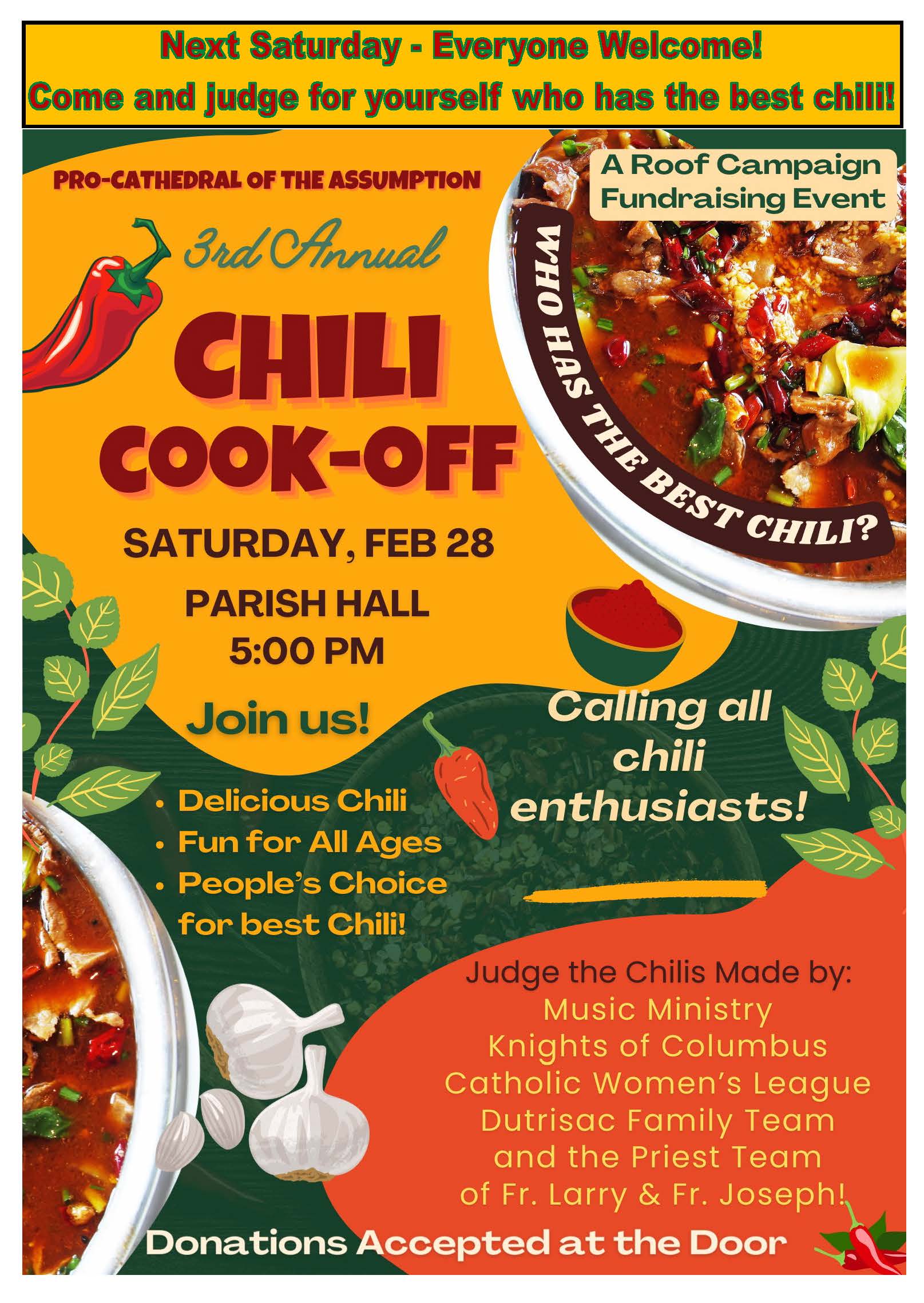 Next Saturday, February 28 – CHILI COOK-OFF!