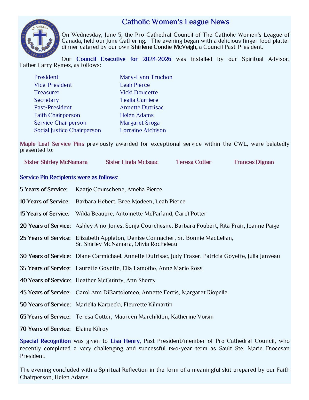 Catholic Women’s League, Pro-Cathedral Parish Council celebrates 103 Years!